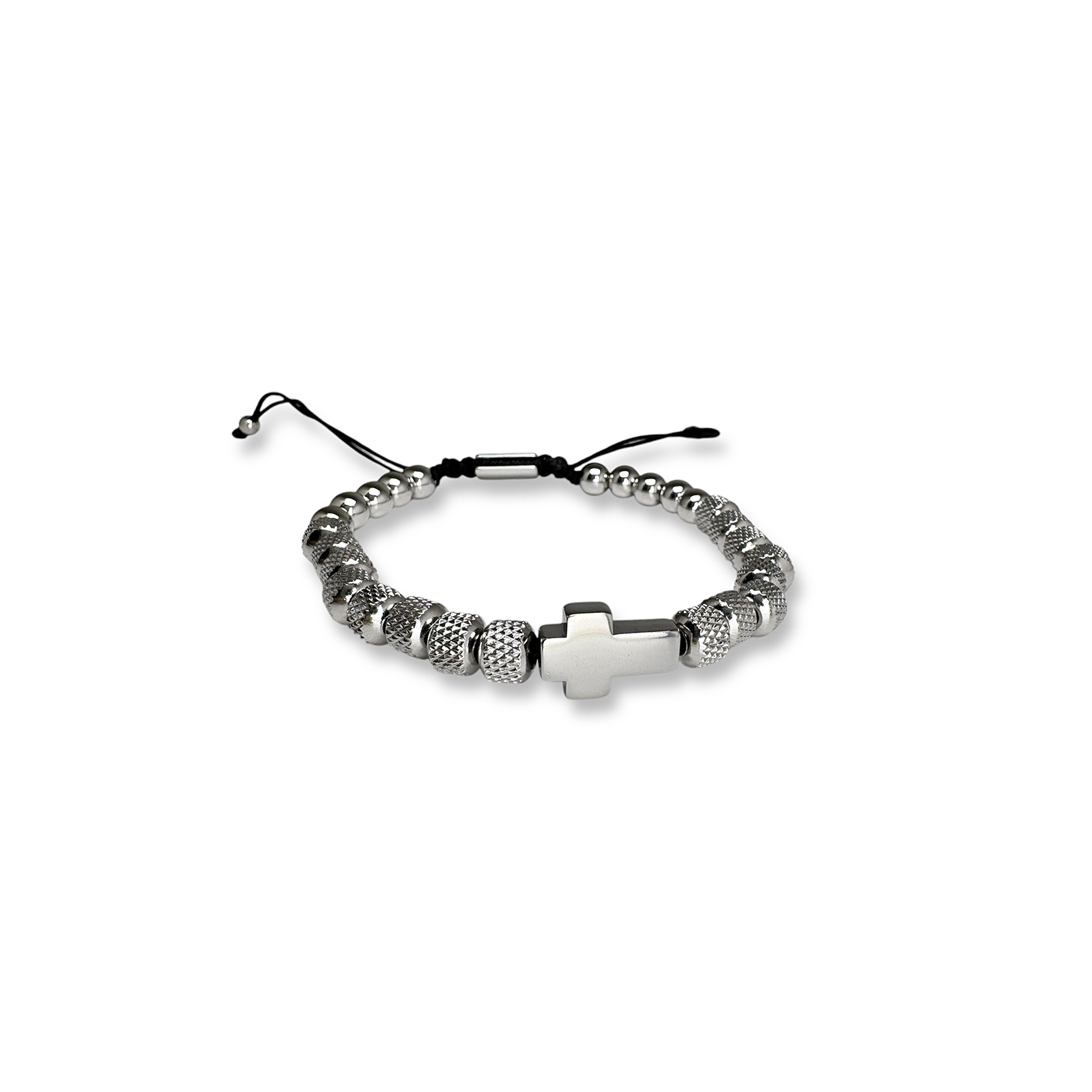 Kralenarmband met robuuste RVS kralen in goud- of zilverkleur met kruisje – hét symbool van het christelijke geloof in Jezus Christus.