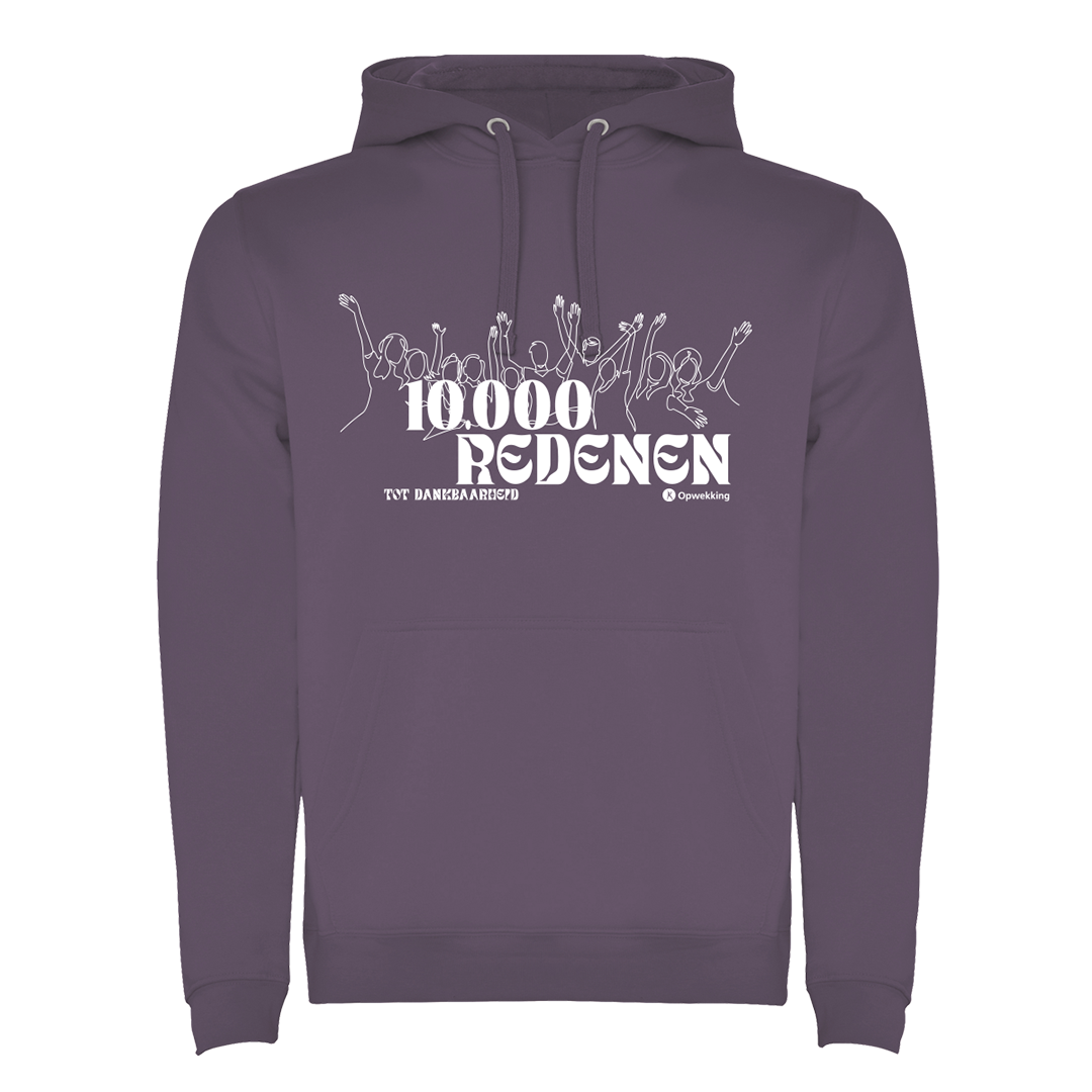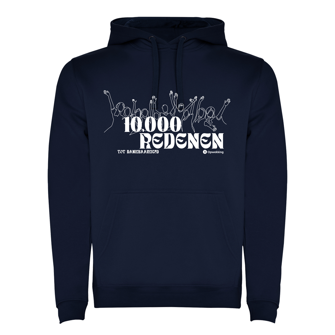 Heerlijke warme hoodie met de opdruk ”10.000 redenen”. Verkrijgbaar in de maten S t/m 3XL