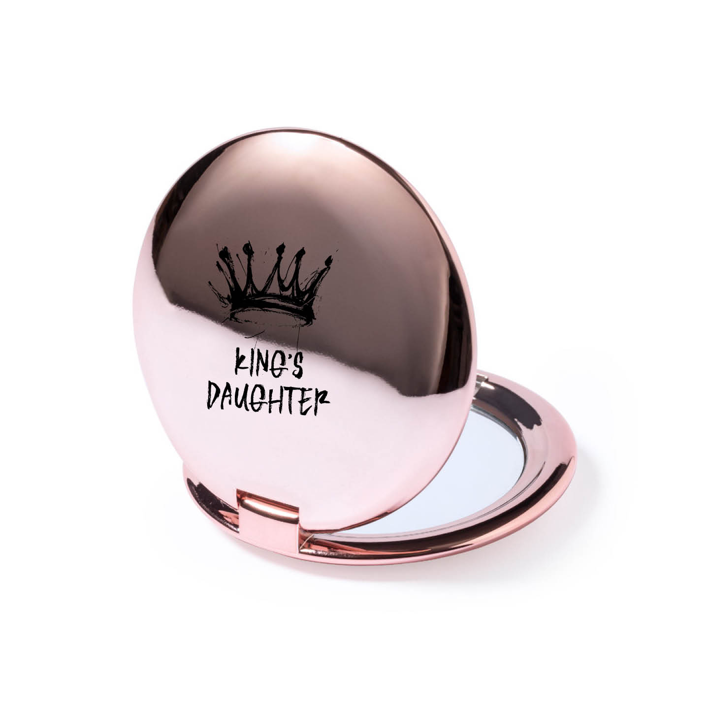 Stijlvol en compact spiegeltje in metallic uitvoering. Met ‘King’s Daughter’ en kroontje op de bovenkant