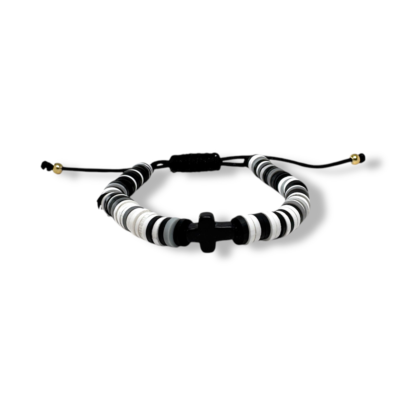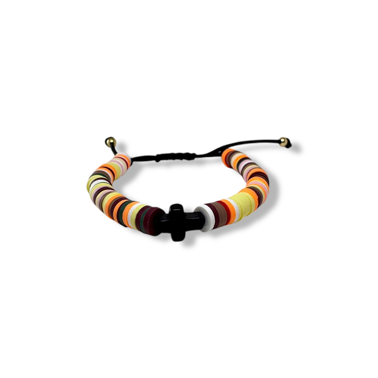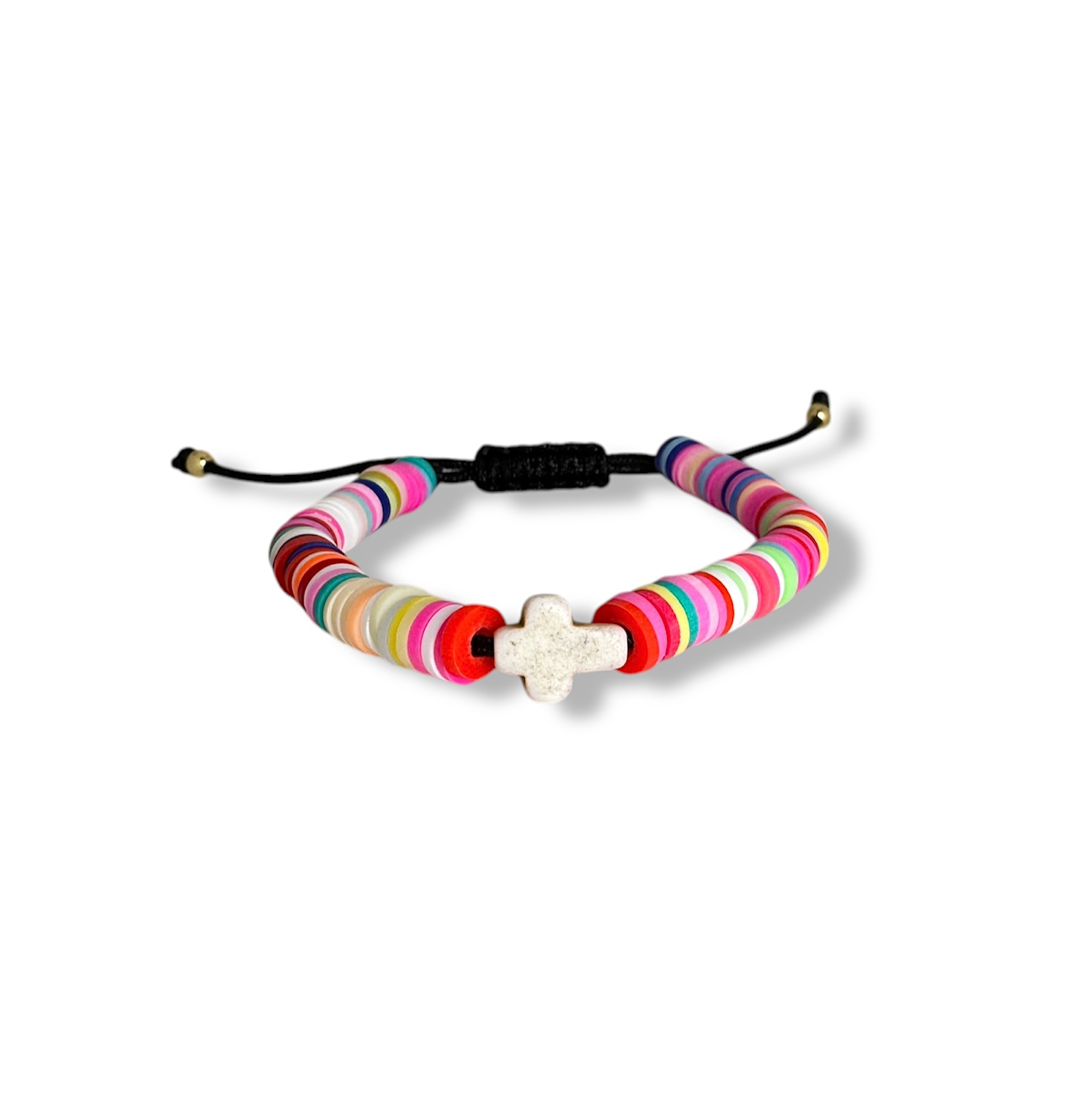 Kleurige kralenarmband met trekkoord en een kruisje voor een fleurige uitstraling!
