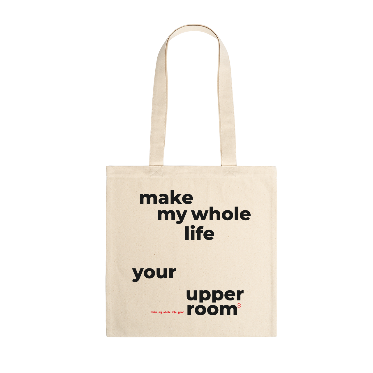 De voorzijde draagt de inspirerende tekst ‘Make my whole life Your upperroom, terwijl de achterzijde subtiel het Upperroom-logo toont.